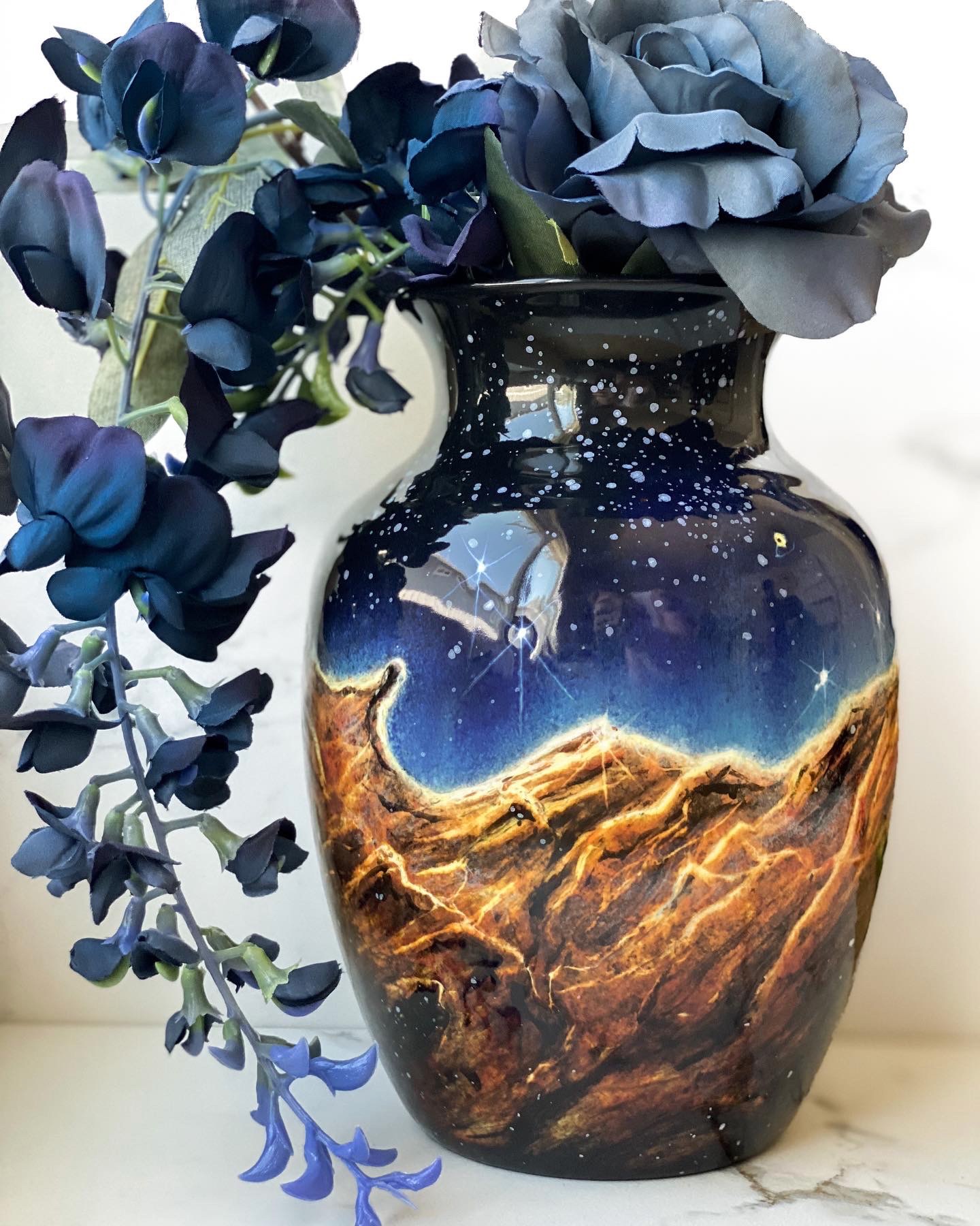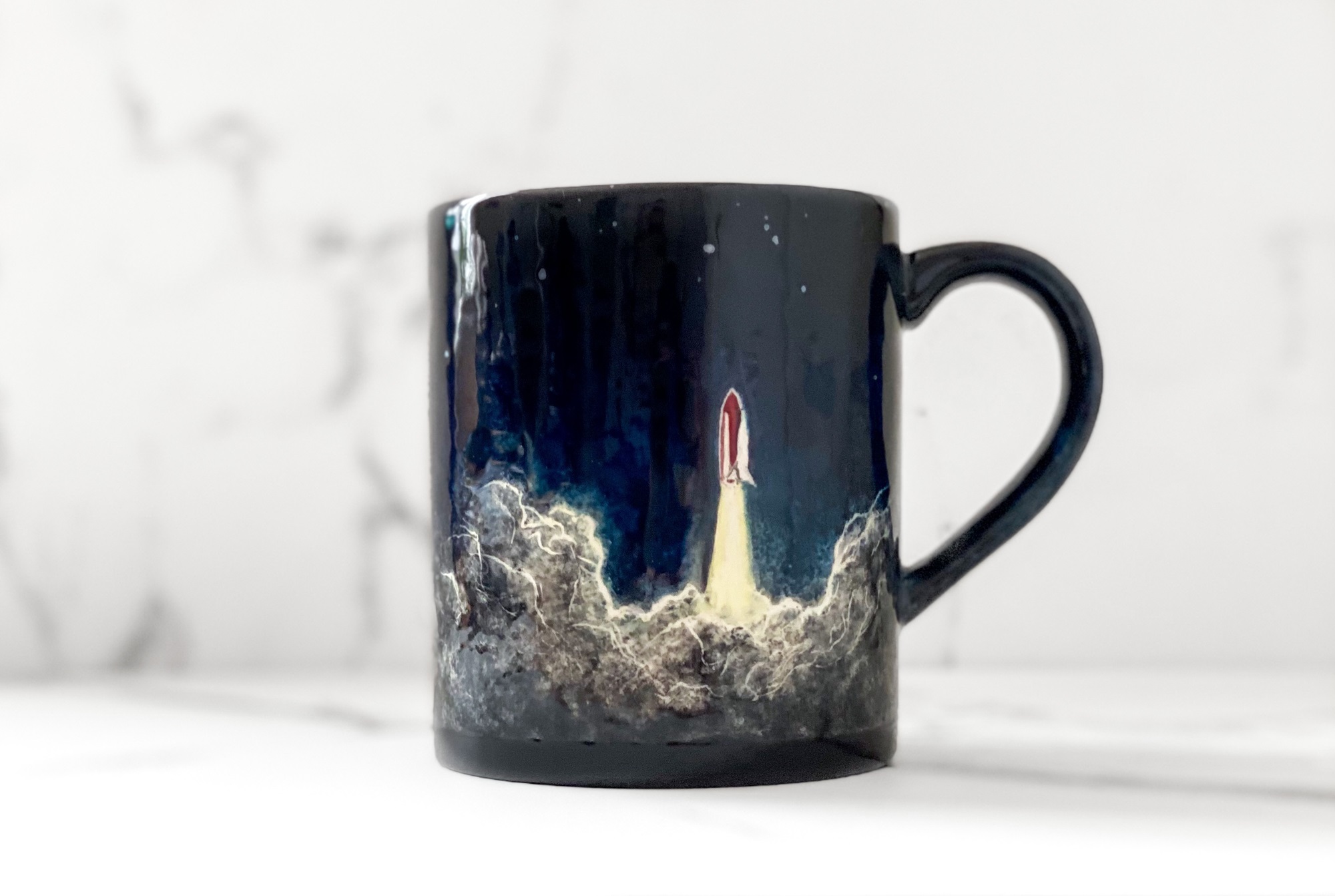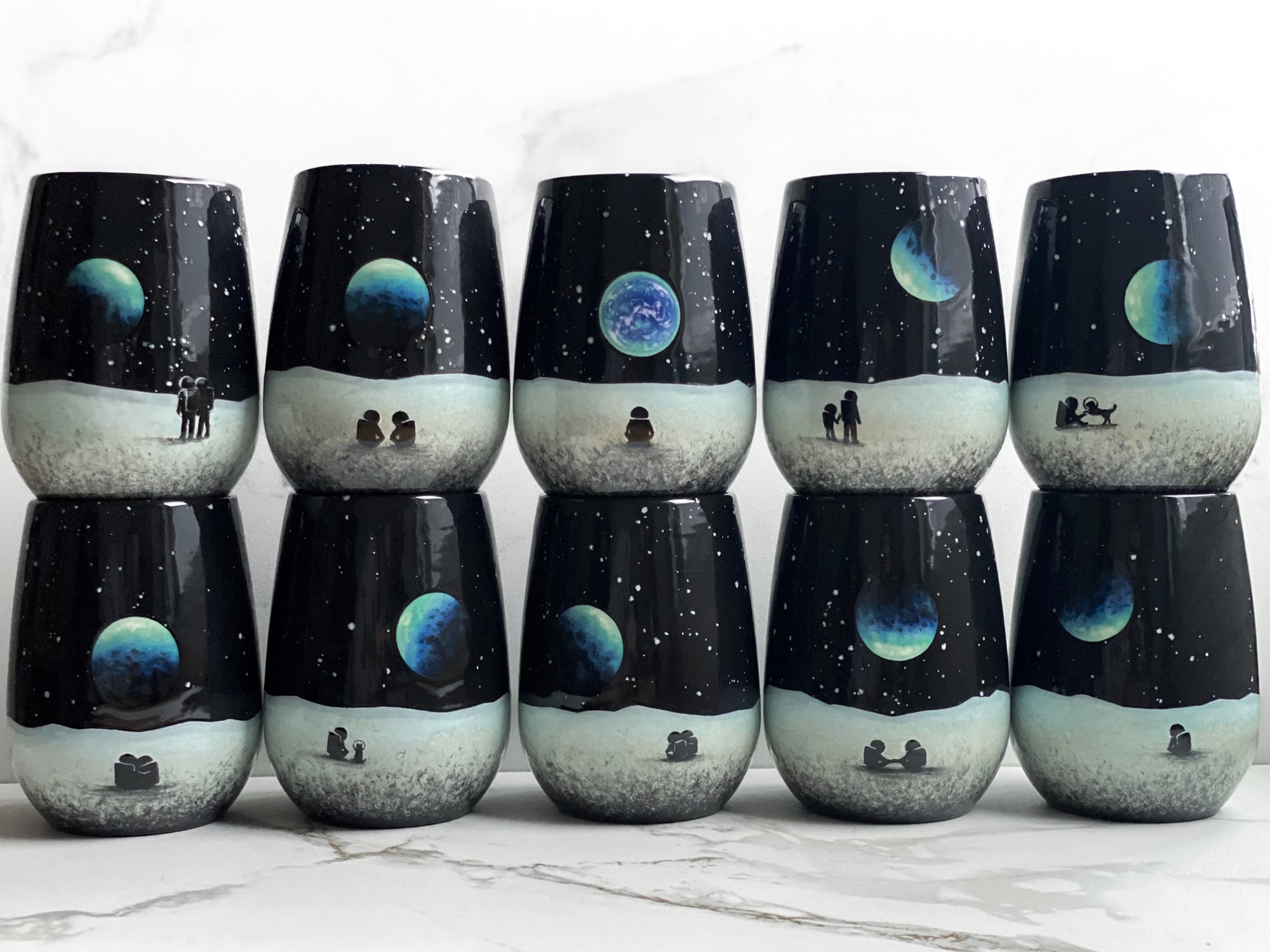 Yes, I did one with The Monster Inn and there was a couple of monster mugs that we worked on together and they shipped them to me from the UK and I painted a few astronauts climbing up a rocky surface on this monster design and another one had a galaxy on it. And that was really cool to be able to see all of the skill and building of piece and the design of the creature where I got to think about how to make an interesting surface on each of those different designs. A lot more interesting sometimes than a plain cup.